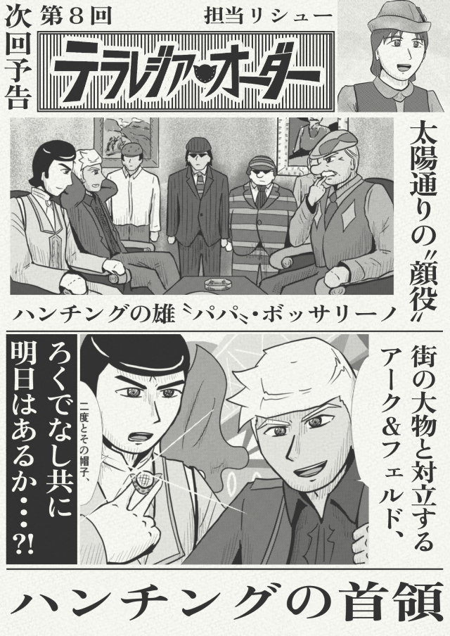 さて、次回はこの僕も住み始めた首府の下町で、街を牛耳る〝顔役〟が登場するという。みんながみんなハンチングを被っているから「ハンチング同盟」名乗ってるらしいぞ!