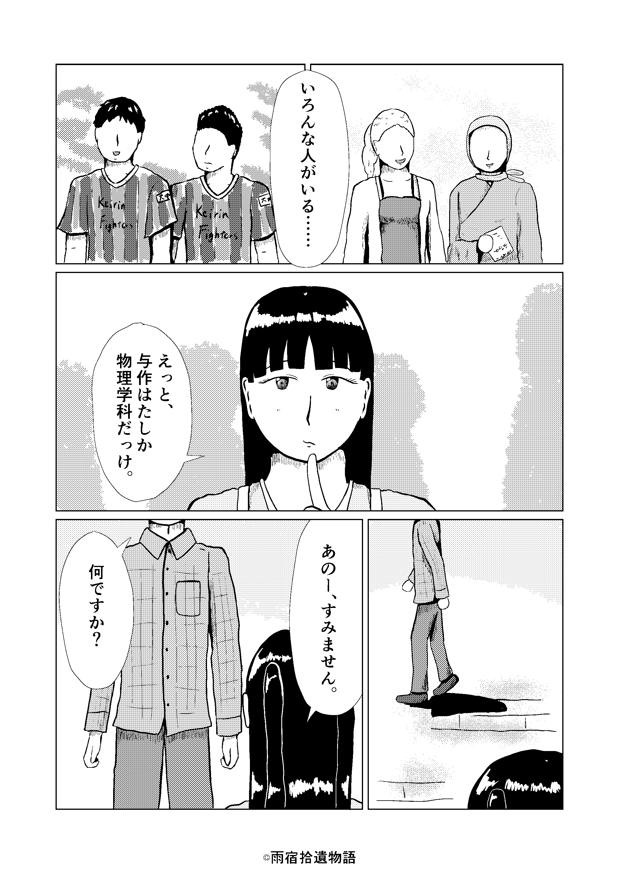 与作を追って大学にやってきたアガタ、初めて見る大学はたくさんの学生が行き交っています。