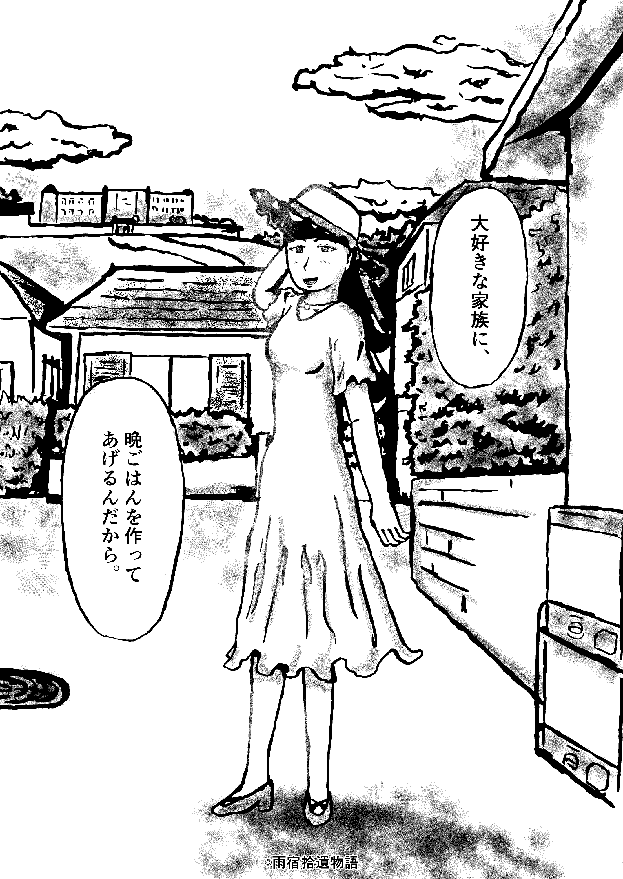 夕暮れの街で家族を思うお母様の凛々しい姿がよく映えますね。