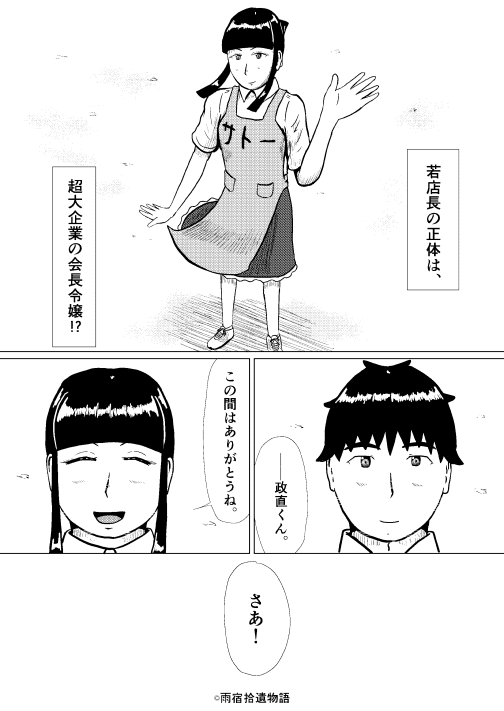 母、神之目時子に続いて父、神之目満爾にもサトーのことを知られてしまった結子店長。外出禁止にされ、サトーは営業休止を余儀なくされる。意気消沈の結子は学校でもどこか上の空。店長の正体を知る中辻高校の常連たちはそのことを悟り、政直は家を出る満爾と顔を合わせ、営業が認められるように直談判するのだった。