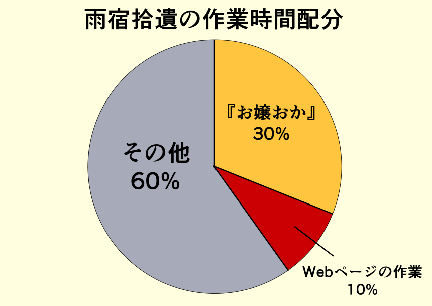 「Webページの作業」は記事を書いたりHTMLをいじる作業のことです。表紙・裏表紙を描く作業もここに含めました。毎月の更新を行うためには休めない。