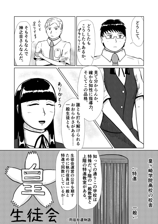 「私立皇ヶ崎学院高校。21世紀型アーバンスクールを目指し都原に創立した私立高校。(第1話より抜粋)」