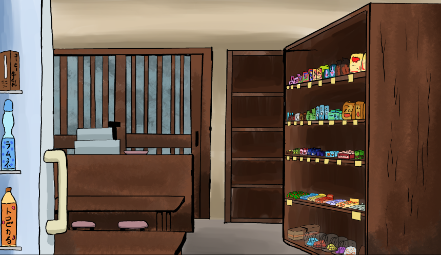 僕の画風と、細かい背景をめんどくさがる気質とが相まって、だがしやサトーの様子についてはなかなか分かりにくい部分もあったかもしれません。だけどこれからはこの模型があるので、どんな構図でも簡単に描くことができる……でしょう!!