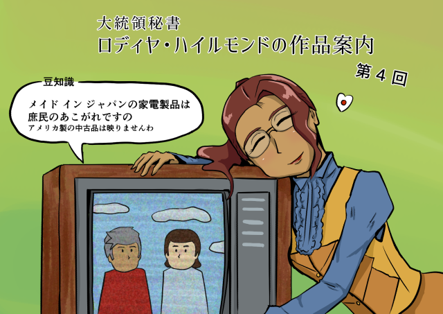 テレビというと、あたくしロディヤ・ハイルモンドもテレビっ子でしたわよ。……え?「そのせいでメガネをかけてるのか」って?失敬ね、これは伊達メガネですわよ。先生(大統領のことですわ)が「この方が秘書っぽいから」って言って……それはさておき。