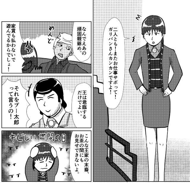 プー太郎で家賃の支払いにも滞ったために大家であるガリバン爺の印刷屋で働かされることになったのだけれど、これも無断欠勤の常習犯。ろくでもない二人組は近所でもそこそこ有名な存在になりつつありました。
