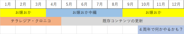 続きまして本年の雨宿拾遺物語の活動予定です。例によって現時点での予定であり、変更の可能性がありますのでご了承ください。
