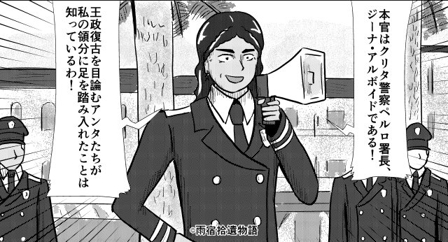 ところが、人気者ゆえの不幸か、来て早々にクリタ警察署長ジーナ・アルボイドから宿敵宣言をかまされてしまいます。アーク&フェルドはこれまでも法律スレスレ、というか多分アウトなことをやってきましたから、警察に因縁つけられるのも仕方ないといえば仕方ないのかしらね。