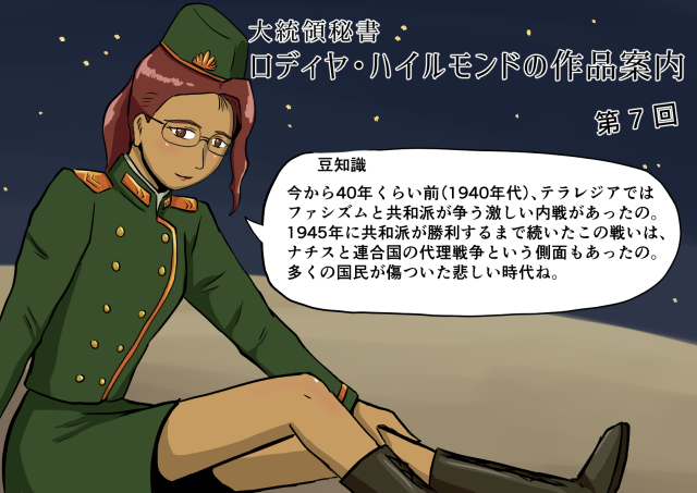 1940年~1945年の「テラレジア内戦」と呼ばれるものね。「先の大戦」といえば、世界的には第二次世界大戦のことを指すでしょうけれど、それと時を同じくして起きたこの戦いがテラレジア人にとっての「先の戦い」なんですの。