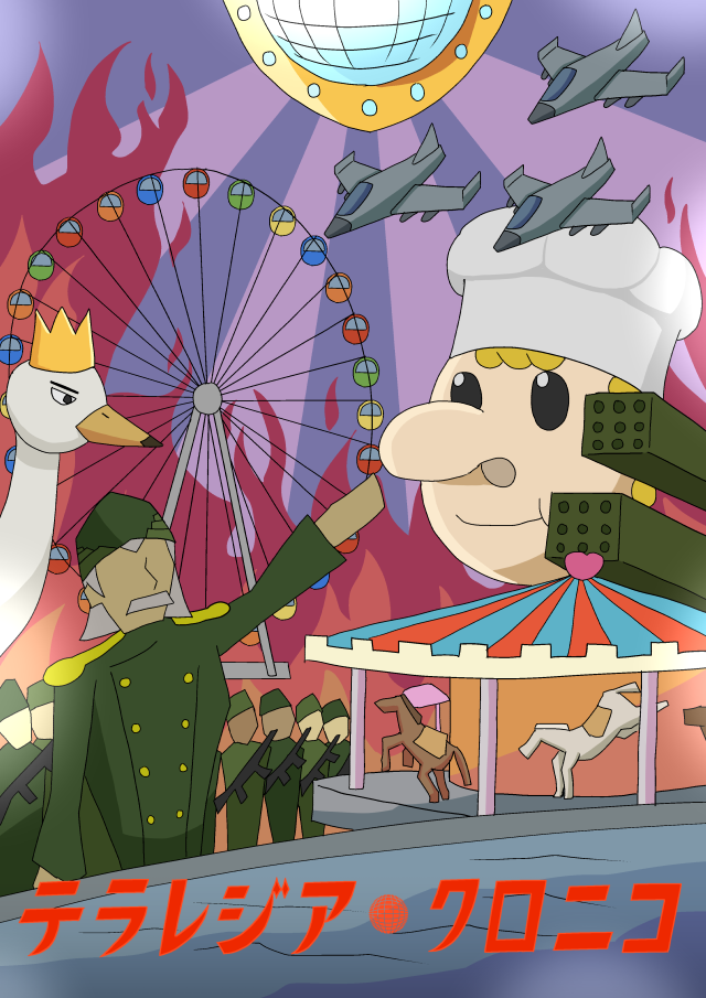 ……カッカしても仕方ないわね。それにしても不穏なイラスト。遊園地のモチーフと、軍隊……?おっかないわね。