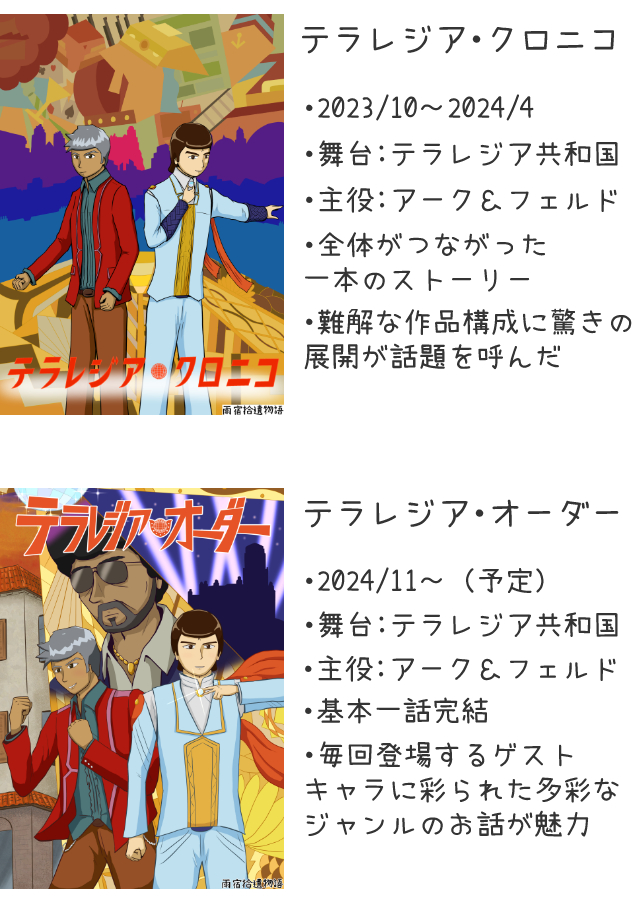 時は遡り2023年10月、このWebサイトで『テラレジア・クロニコ』というお話が公開されたんだ。どんな作品かっていうと、
