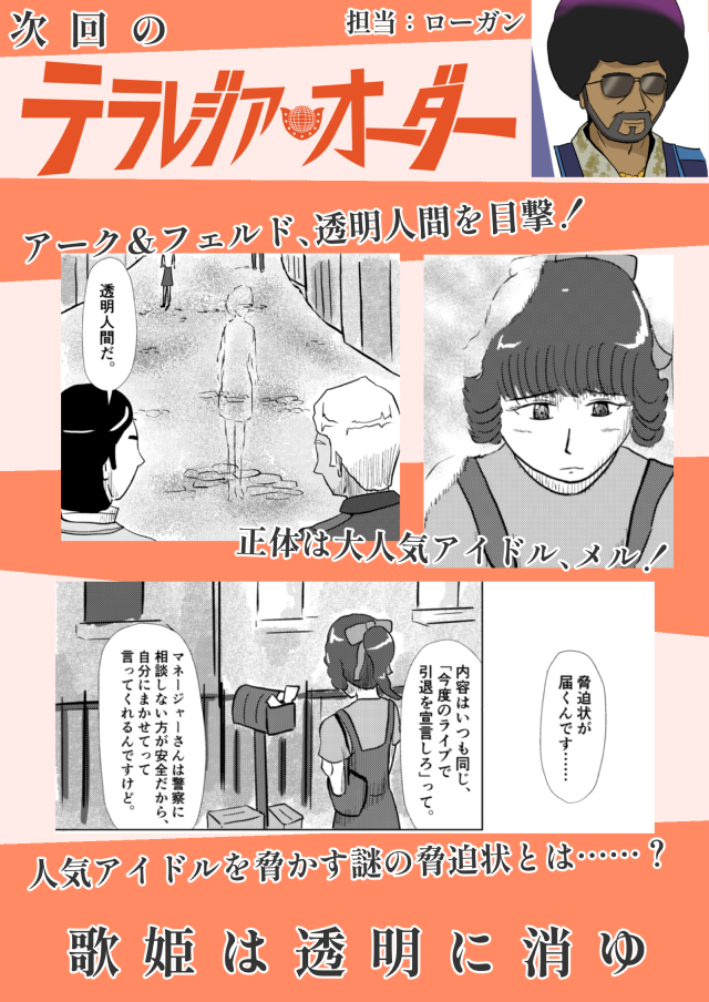 『テラレジア・オーダー』は不定期連載の予定だ。作者曰く「一話一話時間をかけてじっくり作り込んでいきたい」そうだよ。その代わり、どのお話も映画を一本見たような味わい深いものに仕上がっている……はず。だから気長に待ってあげてね。
