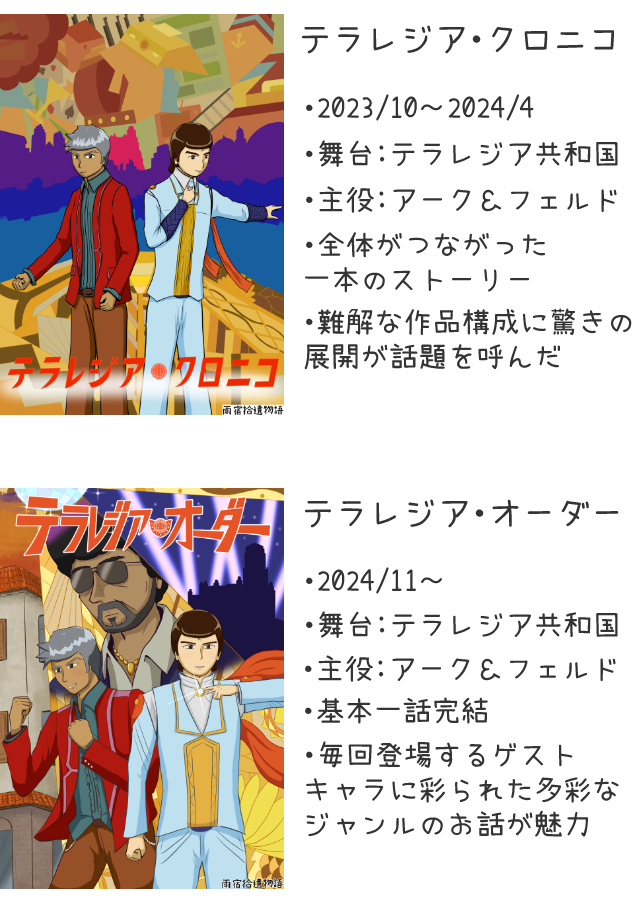 「テラレジア共和国(王国)という割となんでもアリな世界観に、アクション、ミステリー、ロマンス、何でもこなせるアーク&フェルドとその周りの人々は、作者的に「すごくちょうどいい」のです。