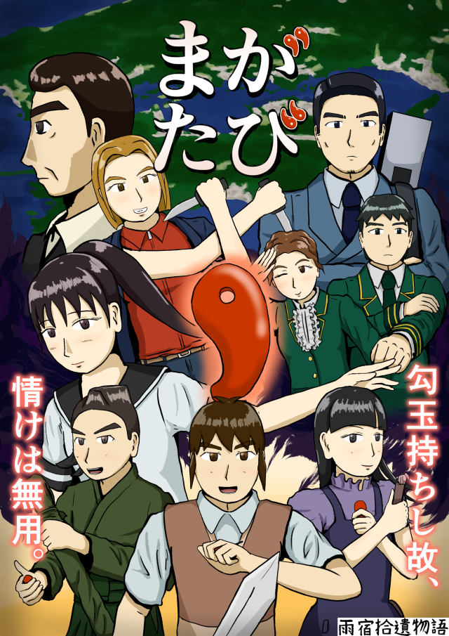 『まがたび』は雨宿拾遺物語創刊当時からの連載作ですが、その原案はさかのぼれば雨宿が中学生くらいの頃に作られました。「地域再発見型冒険ファンタジー」という構想で考えていたストーリーを、雨宿拾遺物語を始めるにあたってマンガ用に台本を作りました。この台本というのは「ページごとに台詞やシーンを文書に書き起こしたもの」で、実はその当時に最終話まで完成させました。
