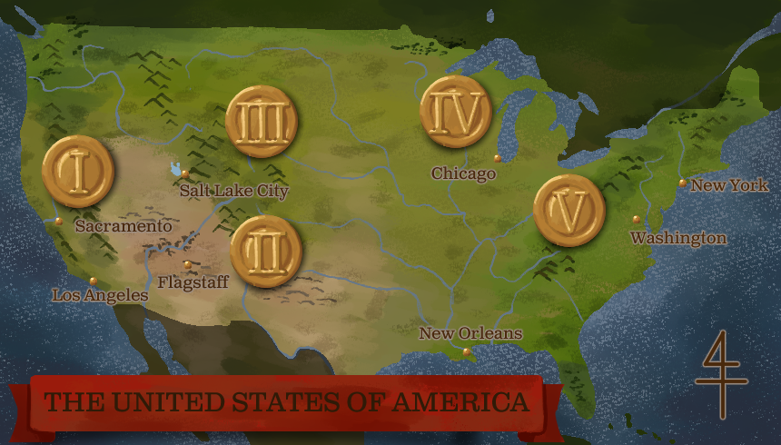 アメリカ大陸に位置する連邦制国家。1776年、英国から独立を遂げた13の植民地の集まりに過ぎなかったこの国は、百年余で欧州の列強をも凌ぐ超大国に成り上がった。その発展には鉄道の存在が欠かせない。シヴィル・ウォーという内戦を経た今もその成長は留まるところを知らず、「黄金」の時代を邁進している。