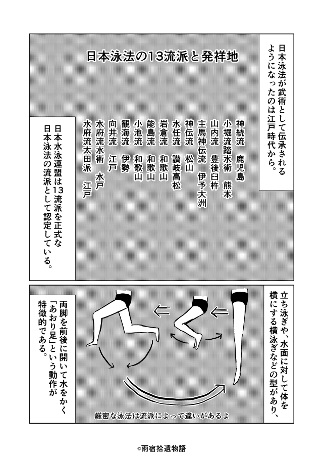 高橋宗良.日本泳法に見る安全水泳の教育内容に関する研究.野外教育研究15巻(1).2012