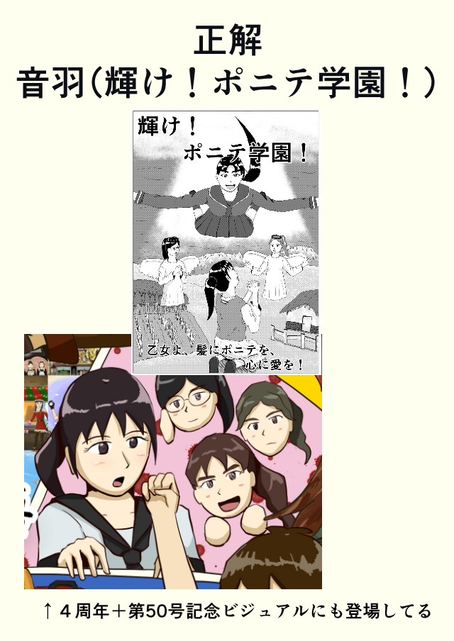 音羽ちゃんは『輝け!ポニテ学園!』の主人公でもあるわ。実はこっちの方が先に描かれたんだけど、ヒロインとしてかわいかったからその後の『まがたび』に続投させたのよ。なお、二つの作品はまったく関係ないものですのでご承知おきください。