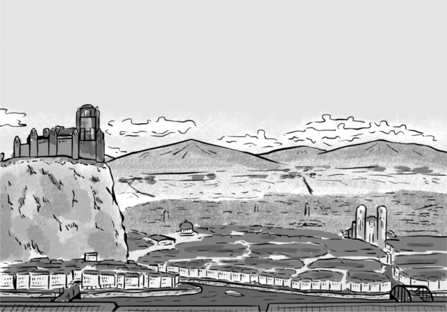 首府は王国時代からの首都です。かつてのテラレジア王はロンガ川が合流する地点にあった岩山に王城を建設することを決めました。難攻不落の要塞となった城のお膝元には都が栄えました。近代に入ると議会政治の中枢が置かれ、共和制移行後もその機能は引き継がれました。20世紀に入って首府の人口は急増、市街地は拡大して、川の北岸の丘陵にも宅地が拓かれました。現在の太陽通りの辺りです。