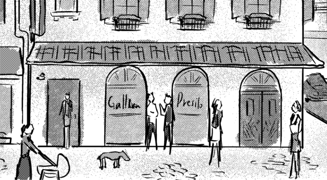 首府の南岸地区、太陽通りの入口にある建物です。三階建てのアパートメントで一階はガリバン氏による昔ながらの活版印刷が営まれる「ガリバン印刷」、二階は大手新聞社テラレジオ・ポスト社の分社、三階にはあの有名な二人組、アークとフェルドが住んでいます。有名人だからといって自宅に押し掛けるのはお勧めしません。あなたが若い女性なら歓迎してくれる可能性がありますが、そうでなければ追い返されるでしょう。どうしても会ってみたいなら、二階のテラレジオ・ポスト分社に行ってそこの社員に相談してみると、取り次いでくださる可能性があります。ですがここだけの話、一階のガリバン印刷で二人がアルバイトをしている時があるそうです。