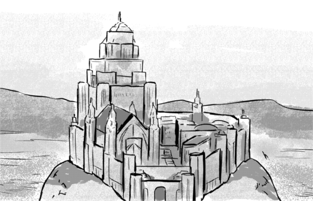 バロン県の県都、バロン市の中心部にある大聖堂です。一つの巨大な岩山をまるごと大聖堂にしたもので、テラレジア清教の聖地でもあります。「バロン大聖堂」といえば、狭義には岩山の頂上にある大聖堂及び尼寺のみを称し、広義には岩山を登る参道の市街も含めて称します。参道の市街には宿屋、飲食店、土産物店、各種行政サービスが揃っていて、観光は泊りがけで行うのがオススメ。