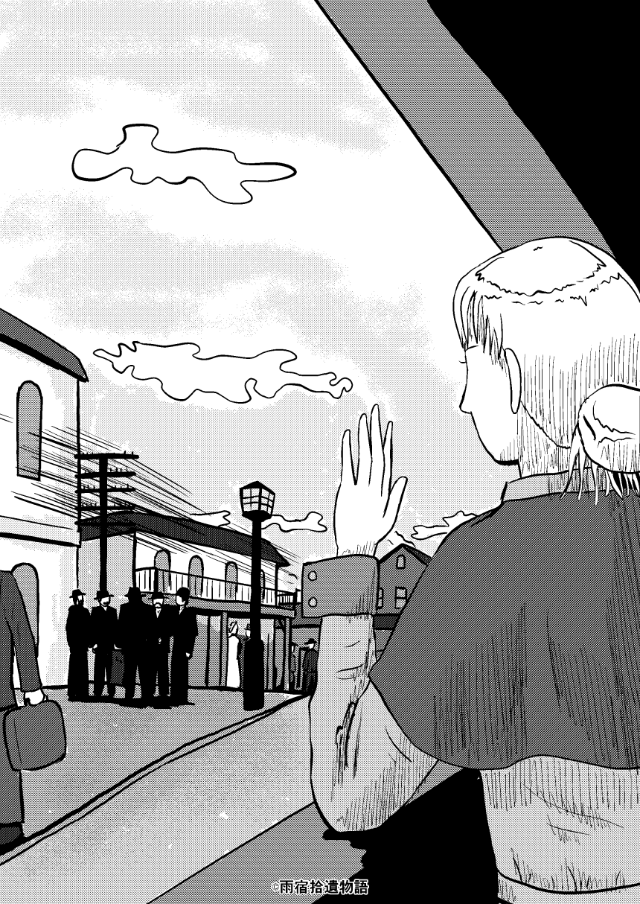太陽に雲がかかり、客室に落ちる四角形の光が縁を失う。稲熊は再び「良きこと哉」と呟いた。