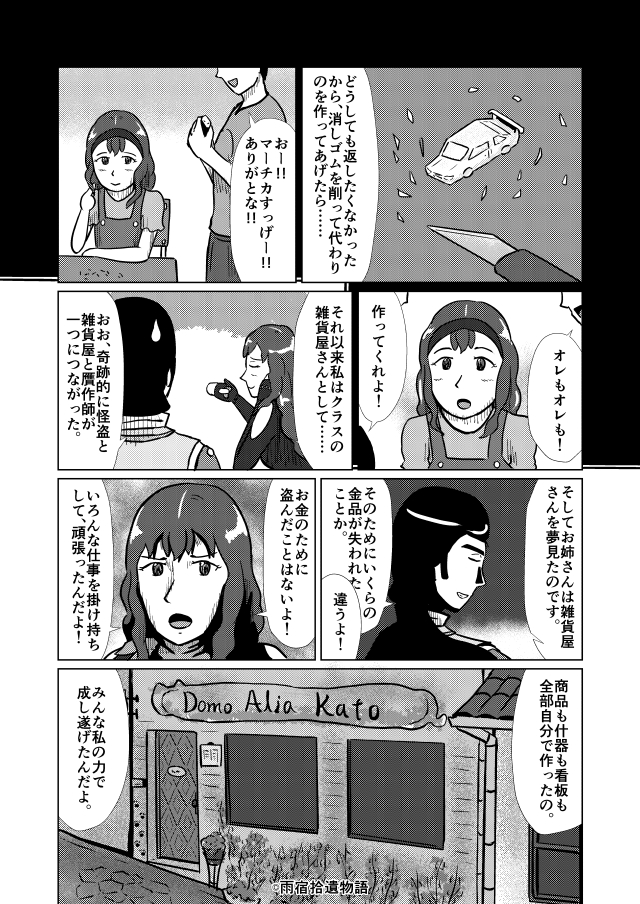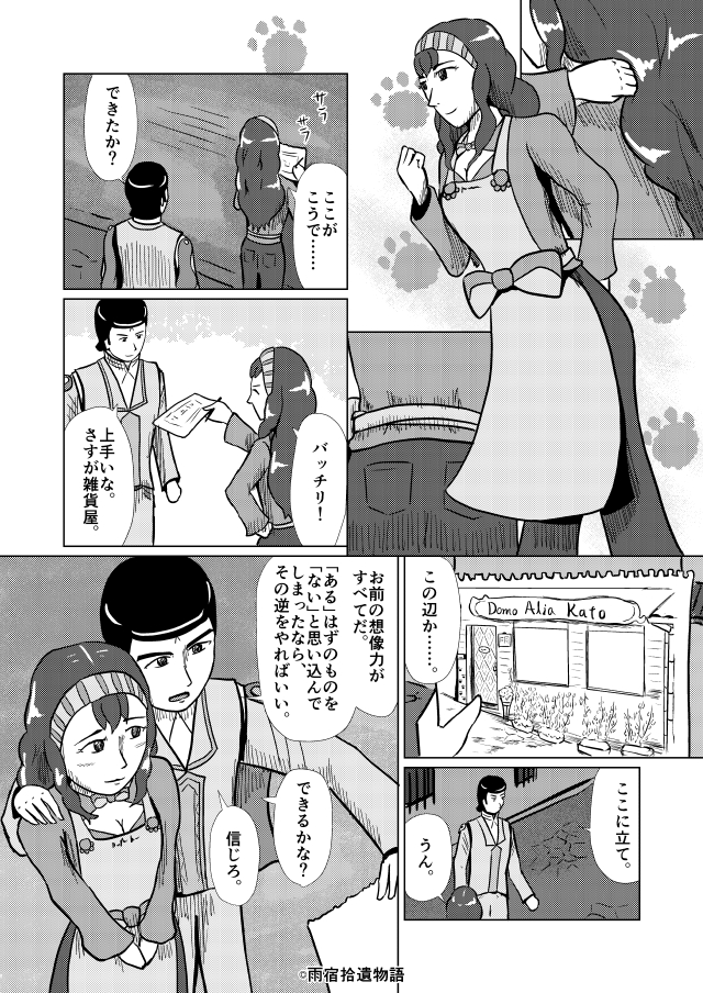 ドーモコンニチワ!お姉さんは雑貨屋店主のマーチカで~す。手作り雑貨の店「Domo Alia Kato」は太陽通りで営業中!商品は全部お姉さんの手作りで、かわユいインテリアや食器、気になるアノ子の心を射止めるアクセサリーや、普段使いもバッチシなアパレルまで何でもござれ。贈答用のオーダーメイドも承ってるから気軽に相談してね!